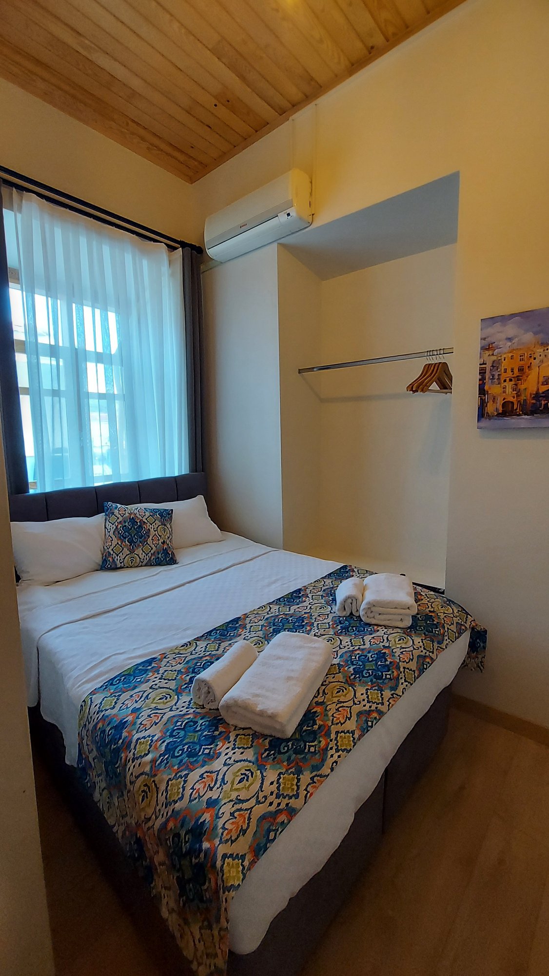 Pansiyonumuzun en minyon odasıdır. İkinci katta yer alan oda içinde özel banyo, TV ve klima bulunur. Yüksek tavanı ve geniş pencereleri sayesinde oda ferah ve rahattır.